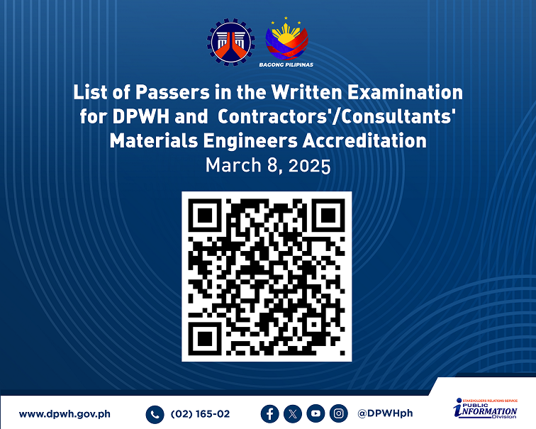 List of Passers in the Written Examination for DPWH and Contractors'/Consultants' Materials Engineers Accreditation (March 8, 2025)